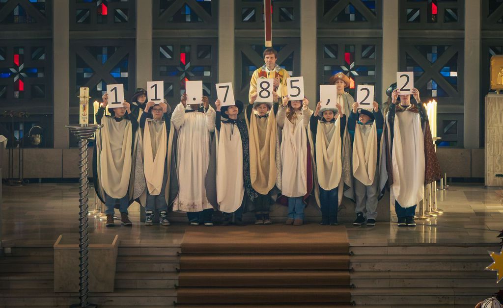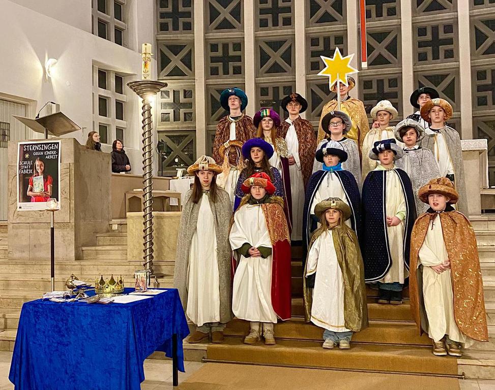 Beim Jahresschlussgottesdienst an Silvester wurden auch diesmal wieder die Sternsinger ausgesandt. Drei volle Tage lang waren die Mädchen und Jungen dann in mehreren Gruppen - und in Begleitung eines Erwachsenen - in unserer Pfarrei unterwegs. Dabei sammelten sie Spenden für die Sternsinger-Aktion, die diesmal unter dem Motto "Schule statt Fabrik - gegen Kinderarbeit" stand. Unterstützt wurden sie dabei von Erwachsenen, die die Sternsinger am Mittag im Pfarrheim bekochten und Fahrdienste übernahmen. Am Ende der Aktion waren die jungen Sternsinger ziemlich erschöpft. Aber ihre Mühen hatten Erfolg. Bei der Einholung am Dreikönigstag konnte im Gottesdienst ein neuer Spenden-Rekord vermeldet werden! In den Tagen danach gingen sogar noch weitere Überweisungen und Barspenden im Pfarrbüro ein, so dass letztendlich ein neuer Rekord-Betrag von über 13.000 Euro erreicht wurde!