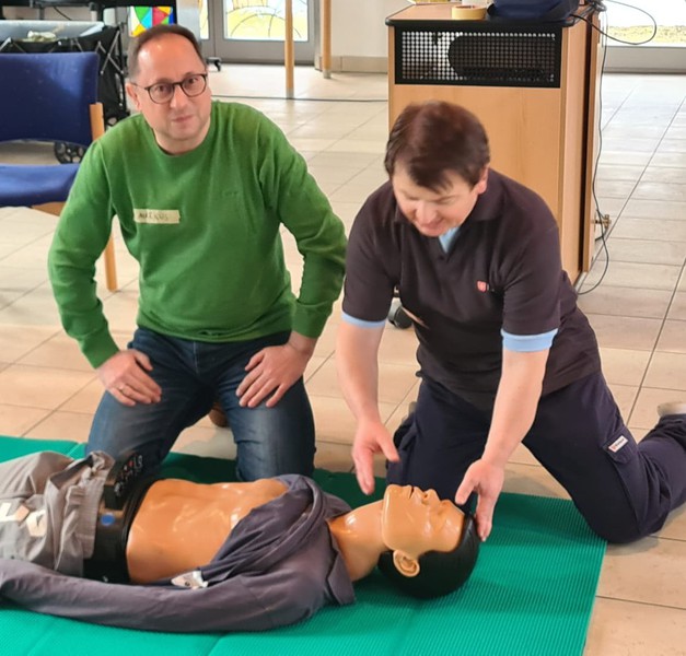 16 Mitarbeiter und Ehrenamtliche der Pfarrei St. Josef - unter ihnen auch Pfarrer Martin Nissel und Kaplan Pater Pio Fichtl - haben am Samstag, 31. Januar, im Pfarrheim einen Erste-Hilfe-Kurs absolviert. Durch Theorie und praktische Übungen führte wie schon vor drei Jahren Detlef Denk von den Maltestern. Durch regelmäßige Fortbildungen soll sichergestellt werden, dass bei den Gottesdiensten und Veranstaltungen der Pfarrei im Notfall geschulte Ersthelfer vor Ort sind.