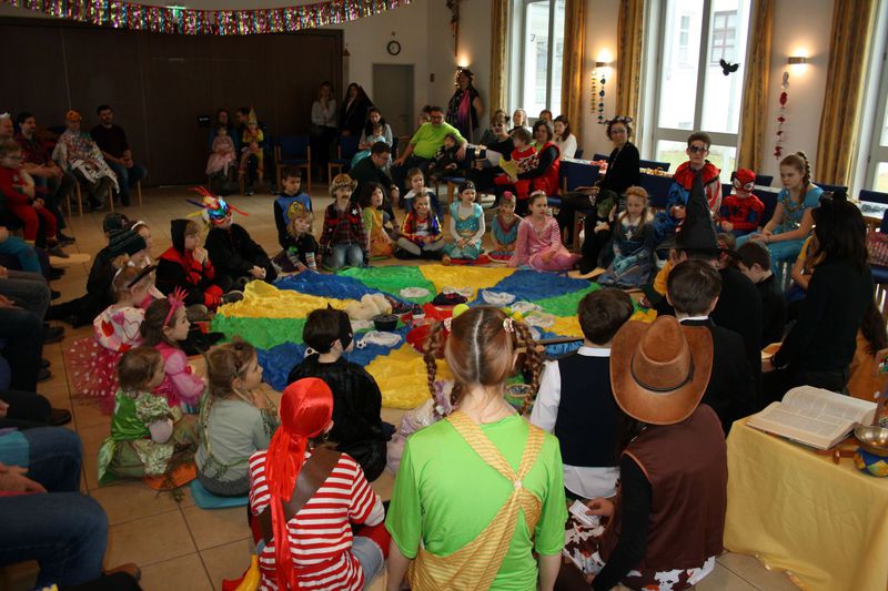 Wie in den letzten Jahren gab es auch diesmal einen Kindergottesdienst zum Fasching. Viele toll verkleidete Mädchen und Jungen sangen und tanzten miteinander und hörten die Geschichte von den genutzten oder vergrabenen Talenten. Kirchenmusikerin Kathinka Frank gestaltete mit den Zwergerln, dem Kinder- und Juniorchor den musikalischen Part. Nachdem sich die Kinder zum Abschluss in der Kirche den Segen von Pater Pio abgeholt hatten, ging es im Pfarrheim mit der Faschingsparty weiter.