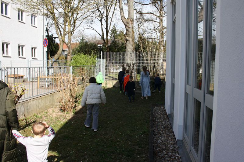 Nach dem Gottesdienst durften die Kinder dann schauen, ob der Osterhase im Garten vielleicht etwas verloren hat ...