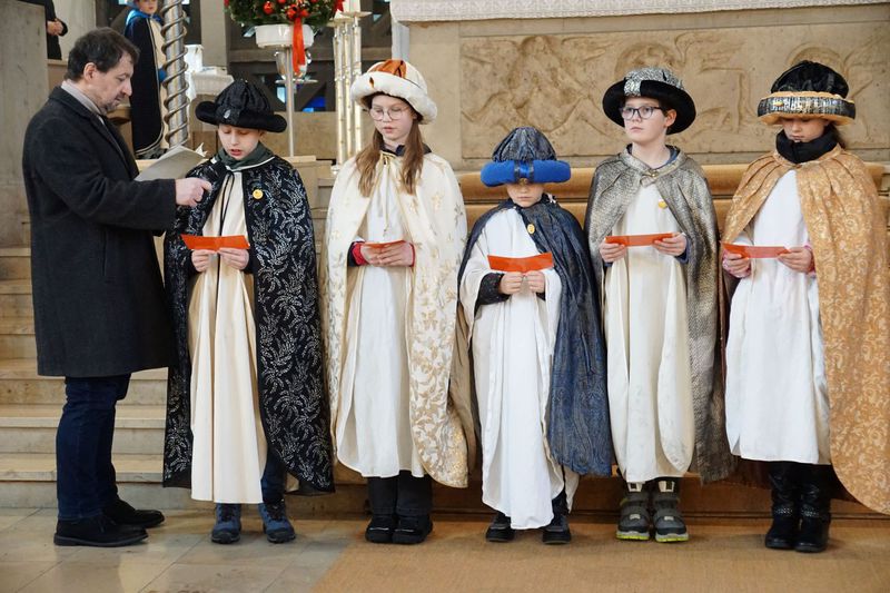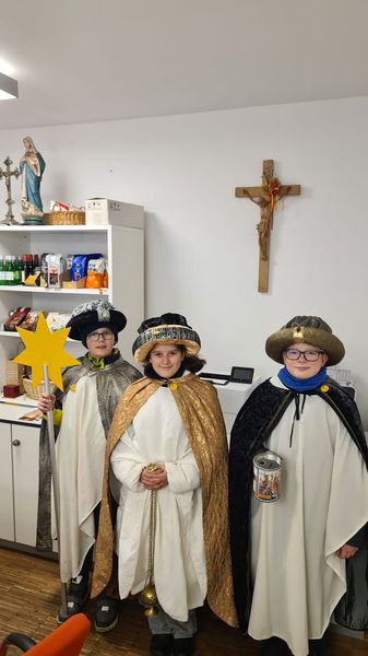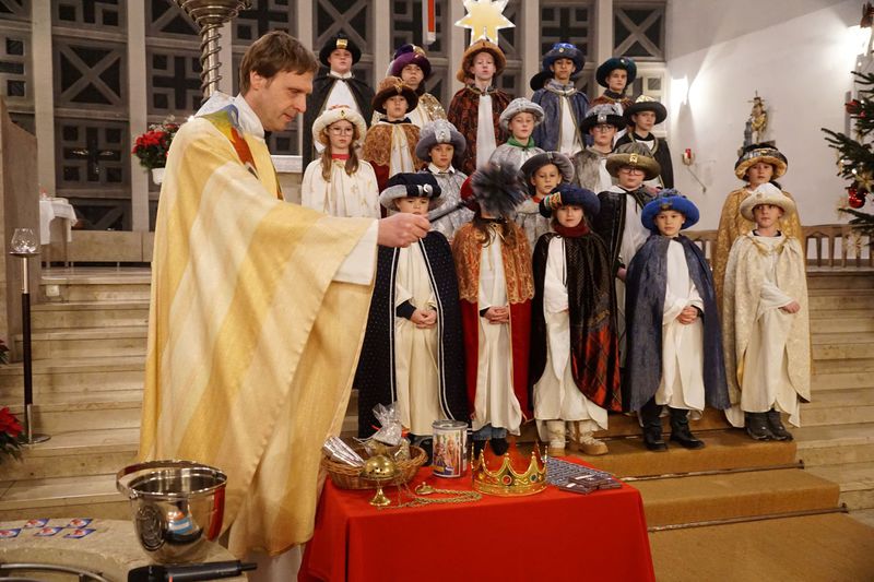 Traditionell werden in St. Josef die Sternsinger beim Jahresschlussgottesdienst an Silvester in die Pfarrei ausgesandt. So machten sich auch diesmal wieder mehr als 20 Mädchen und Jungen nach Neujahr auf den Weg. Dem Stern folgend zogen sie drei volle Tage lang mit Weihrauch, Kreide und Segensaufklebern in ihren wunderschönen Gewändern von Haus zu Haus. Dort sangen sie ihr Sternsingerlied, schrieben den Segen 20 * C+ M+ B+ 25 an die Haustür („Christus mansionem benedicat“ = Christus segne dieses Haus) und baten um eine Spende für die Sternsingeraktion.