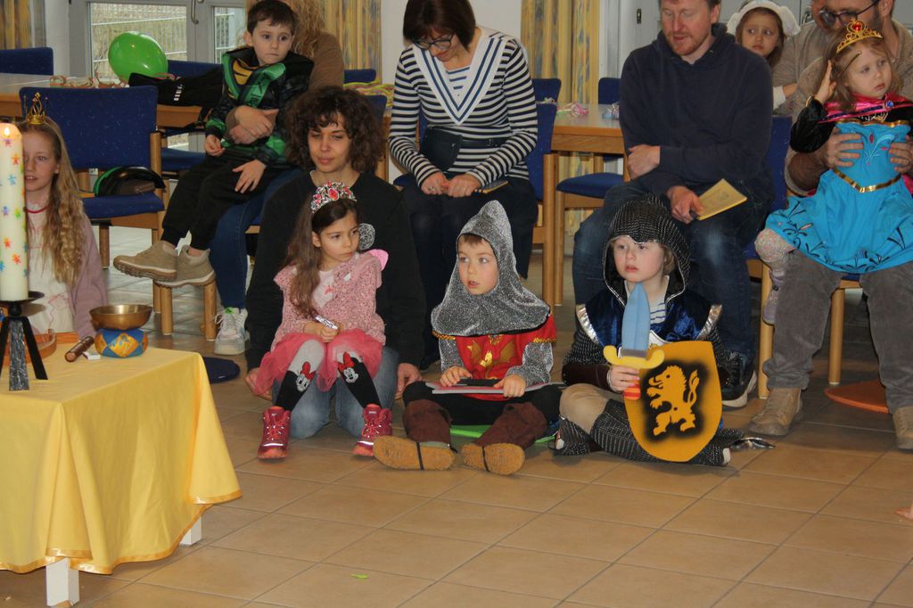 Einen bunten Kindergottesdienst gab es wieder zum Fasching. Viele verkleidete Kinder und Eltern feierten im Pfarrheim. Musik machte Kathinka Frank mit den Zwergerln, dem Kinder- und dem Juniorchor. Zum Abschluss zogen die Maschkerer in die Pfarrkirche, wo sie von Pater Pio den Segen bekamen.