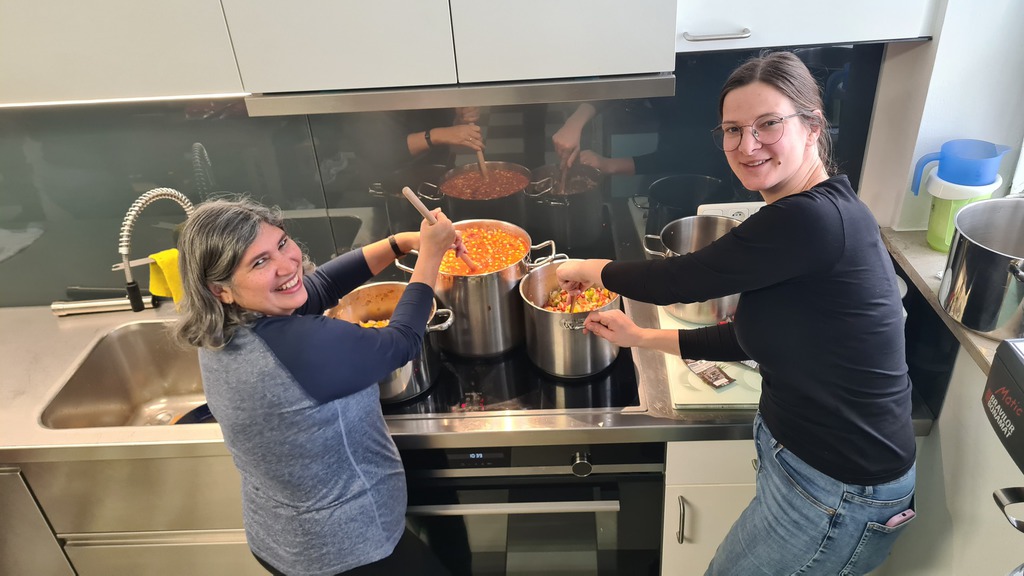 Zum Mittagessen trafen sich alle wieder im Pfarrheim, wo ein erfahrenes Männer-Küchen-Team für tolle Verpflegung sorgte. Frisch gestärkt zogen die Mädchen und Jungen am Nachmittag wieder los. Sobald eine Gruppe mit ihrem Gebiet fertig war, wurde angefragt, welche Gruppe denn Verstärkung braucht. Diese gegenseitige Unterstützung führte dazu, dass an einem Spätnachmittag fast alle unserer sechs Gruppen in der gleichen Straße unterwegs waren …