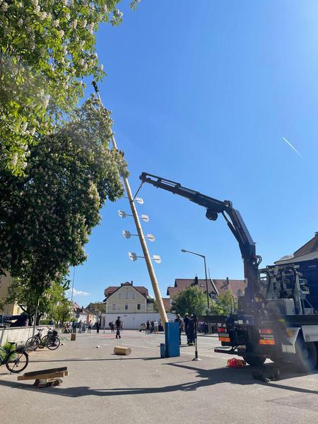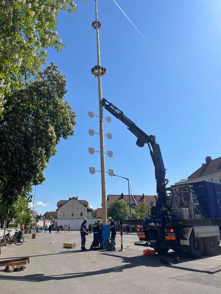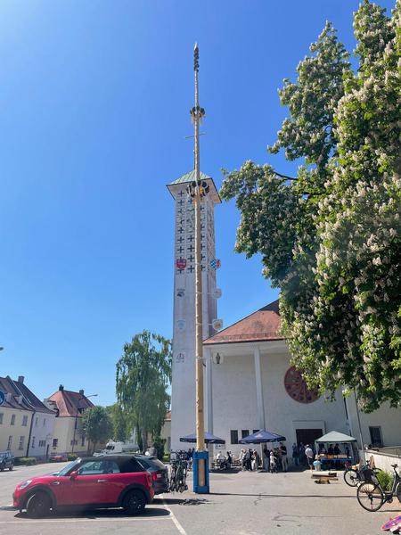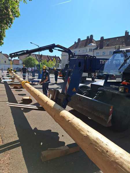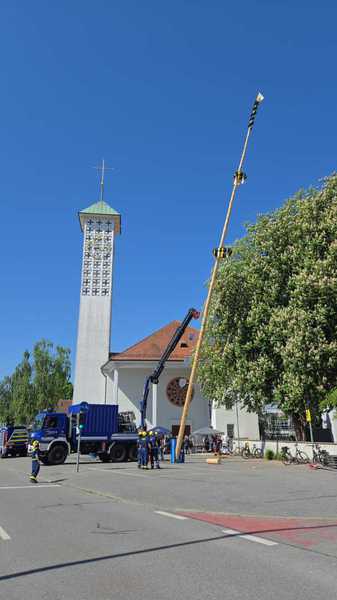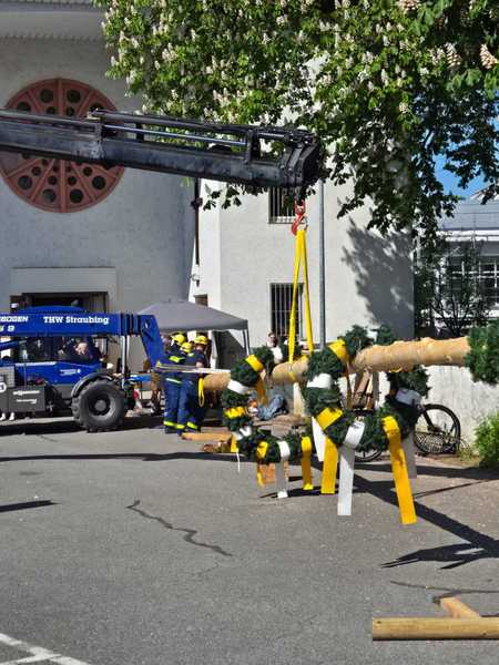 Die Pfarrei St. Josef hat wieder einen Maibaum. Beim Aufstellen am 1. Mai half der Ortsverband Straubing des Technischen Hilfswerks. Zur Feier des Tages gab es vor der Kirche Grillschmankerl und Bier vom Fass. Gestiftet hat den Baum Franz Schreyer.