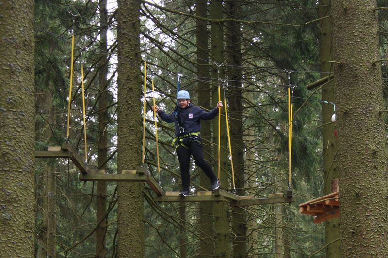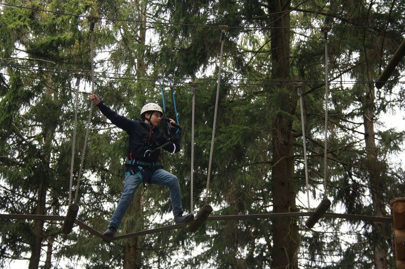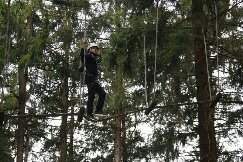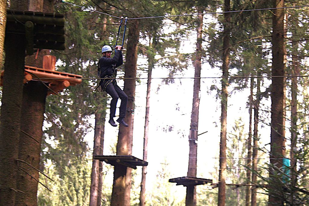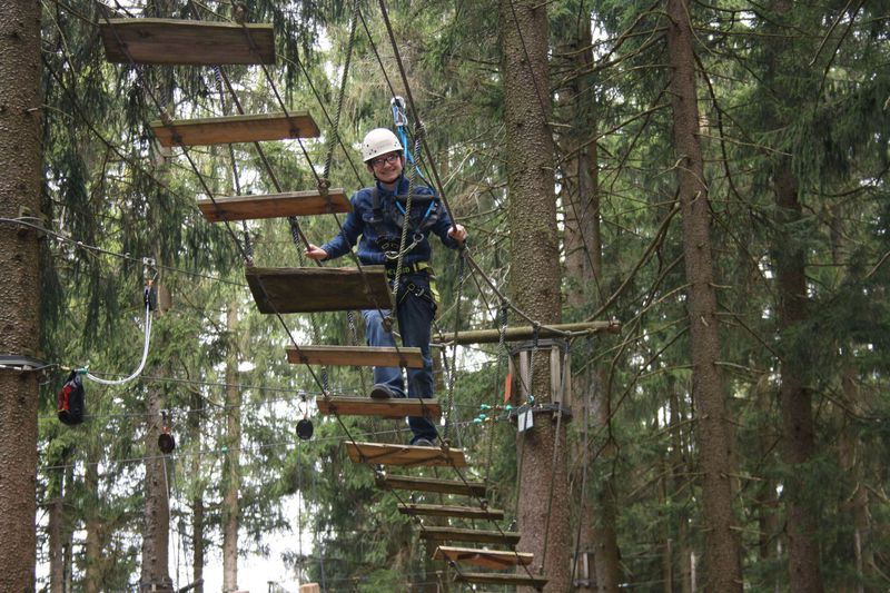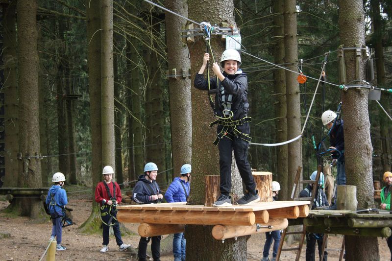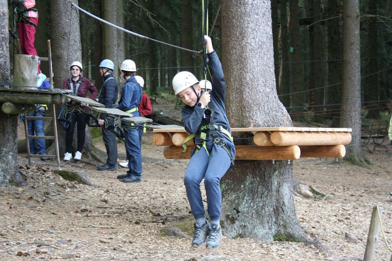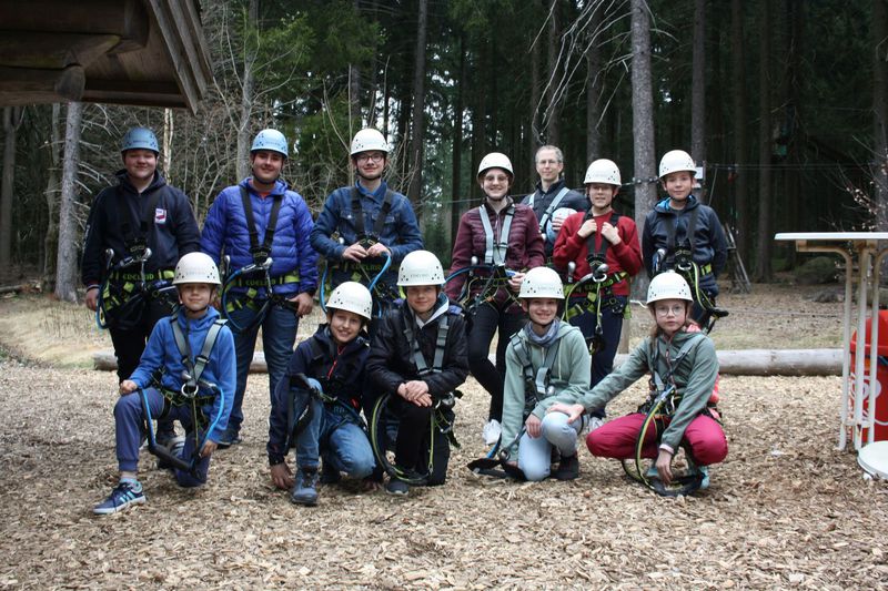 Hoch hinaus wollten einige Minis im Kletterpark St. Englmar. Nach einer Einführung in die richtige Handhabung von Seilen und Karabinern absolvierten die Mädchen und Jungen einen Parcours nach dem anderen. Ansteigende Schwierigkeisgrade waren dabei kein Hindernis.