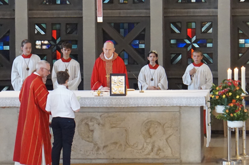 Am 5. Juli feierten 32 junge Christinnen und Christen in der Pfarrkirche Sankt Josef das Sakrament der Firmung. Weihbischof Reinhard Pappenberger besuchte sie zu diesem Anlass.