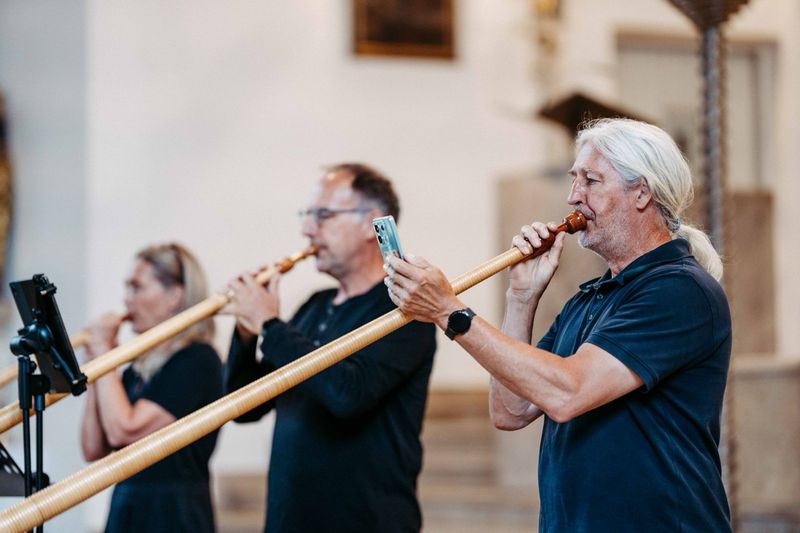 Atmosphäre. Ganz nach dem Motto der hoibn Stund`: zsamm kemma, oba kemma, zuhörn. Zwischen den einzelnen Stücken erklärte Alexander Schulze die Entstehung der Alphörner, die ursprünglich