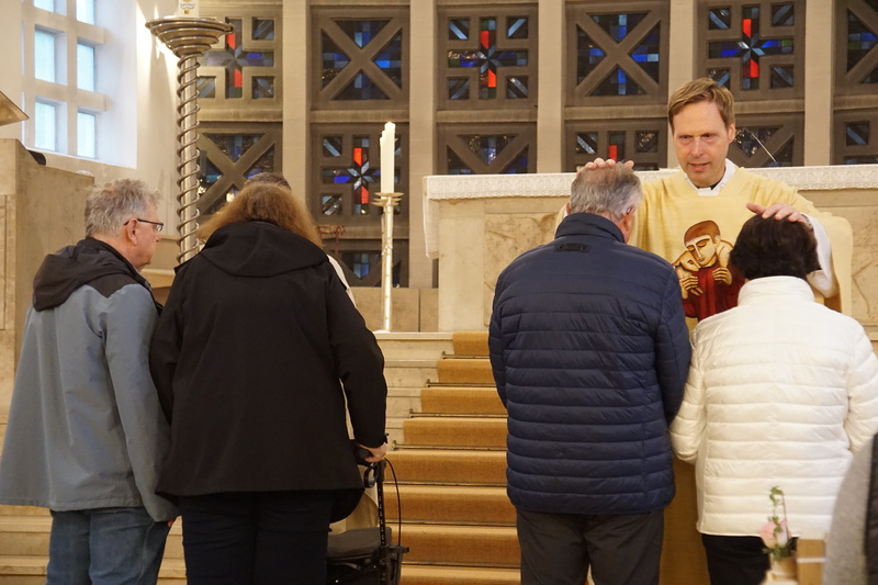 Er erinnerte an die Notkirche und an die Zeit, als er Ministrant in St. Josef war. In den Bänken saßen links die Mädchen und rechts die Buben. Als er einmal hinüberblinzelte und schwätzte,