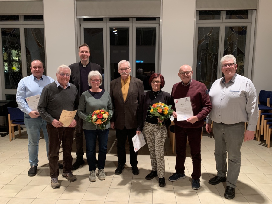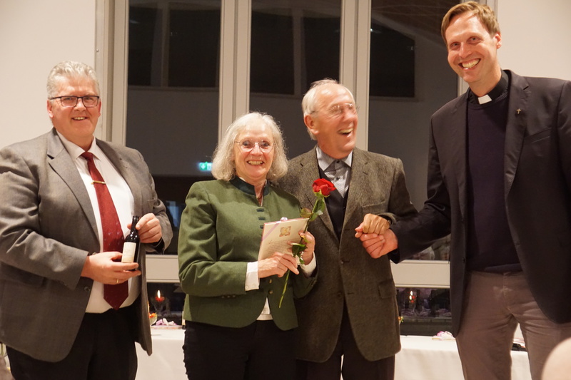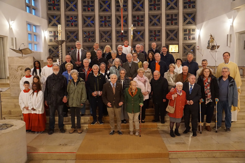 20 Paare folgten der Einladung der Pfarrgemeinde zum festlichen Gottesdienst, anlässlich ihres Ehejubiläums. Den Gottesdienst zelebrierten Pfarrer Martin Nissel und Monsignore Florian Kolfhaus, dessen Eltern sich über 55 Ehejahre freuen dürfen. Unter den Jubelpaaren können 5 Paare sogar ihre Diamantene Hochzeit feiern. In seiner Predigt erinnerte Pfarrer Nissel daran, dass eine Ehe kein fertiges Kunstwerk ist, sondern eine lebenslange Baustelle. Immer wieder müssen die Ehepartner bereit sein, zu reparieren. Deshalb führte er der Gemeinde einen Werkzeugkasten vor Augen und erinnerte daran, was die wichtigsten Werkzeuge für eine Ehe sind. Der Festausschuss des Pfarrgemeinderates kümmerte sich um einen wunderbar geschmückten Pfarrsaal und eine gute Bewirtung der Gäste, die sich im Anschluss an den Gottesdienst im Pfarrheim versammelten.