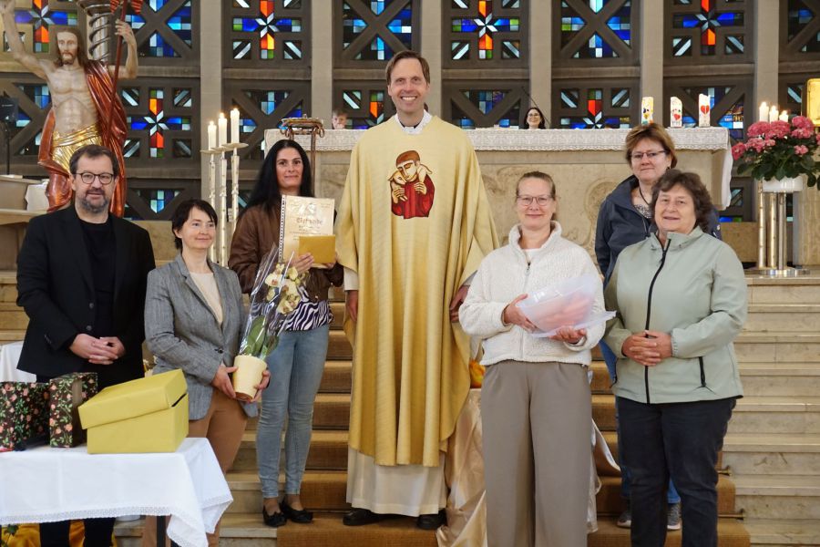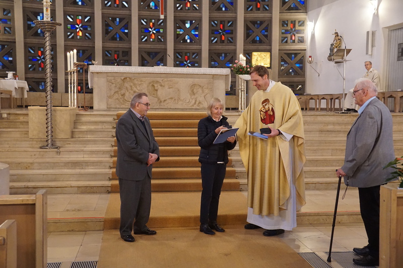 Am Vorabend zu Kirchweih veranstaltete die Pfarrei Sankt Josef ihre Pfarrversammlung. Am Ende des Gottesdienstes überraschte Pfarrer Nissel drei Angehörige der Pfarrei mit der Bischof-Johann-Michael-von-Sailer-Medaille und einer bischöflichen Dankesurkunde. Diese besondere Auszeichnung verleiht der Bischof von Regensburg an Personen, die sich in herausragender Weise für die Kirche und den Zusammenhalt in der Gesellschaft einsetzen.