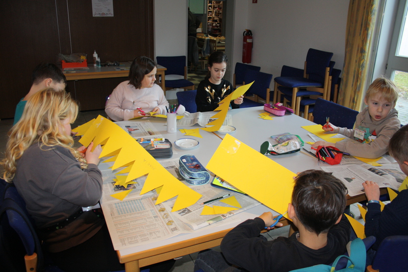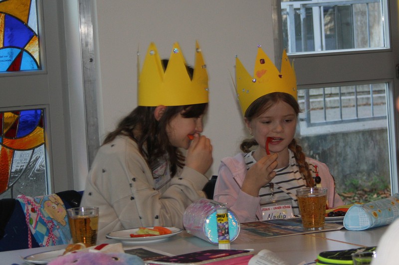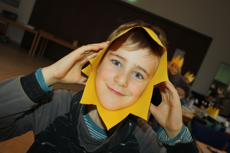 Dazwischen durften die Mädchen und Jungen ihr Basteltalent unter Beweis stellen beim Anfertigen von Kronen und Kreuzen aus Holzwäscheklammern. Und eine Brotzeit gab es natürlich auch.
