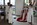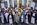 die weißen Kniestrümpfe mit blauen Streifen versahen.